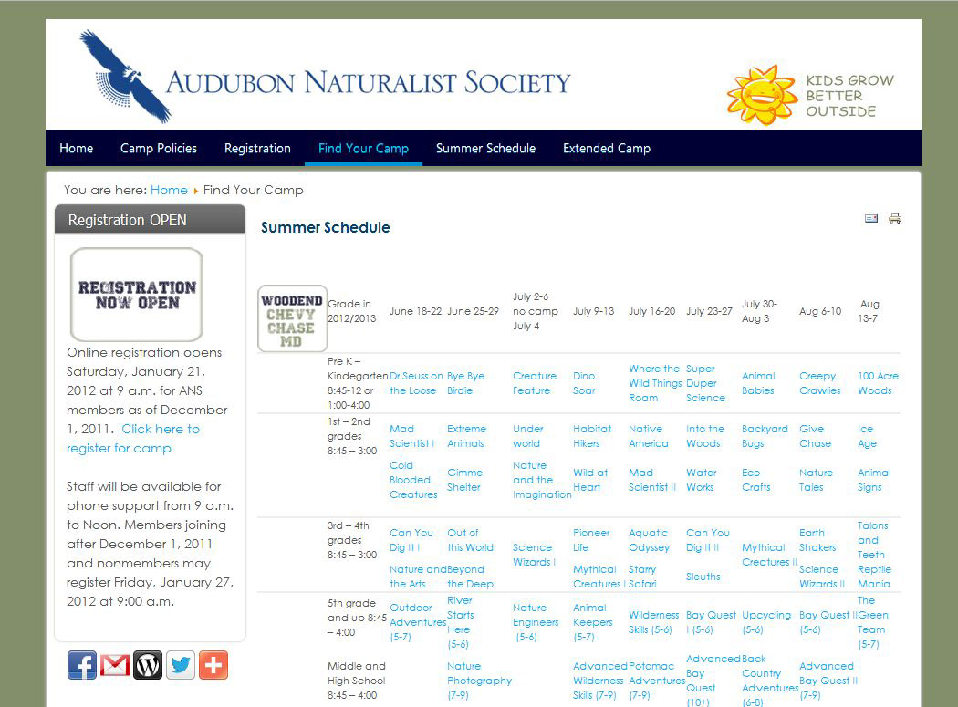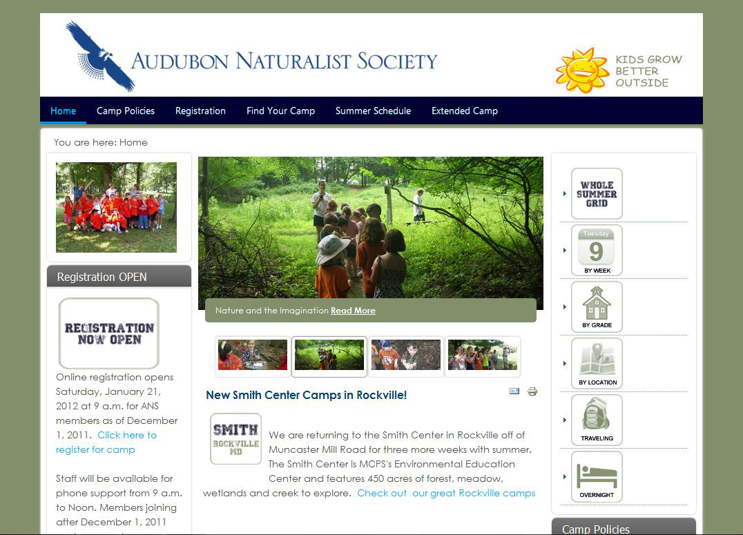 I began working for Audubon just to do a few graphics for their website.  I ended up recreating their website using a new flexible platform.  There was a lot to do but the website is so great, camps are selling out.